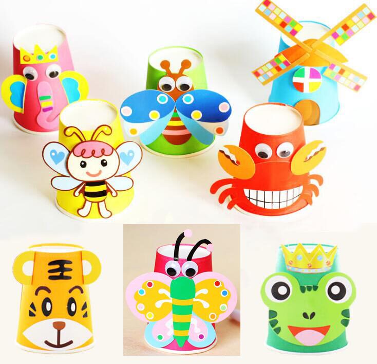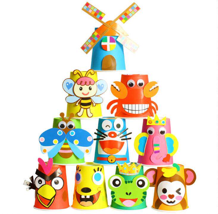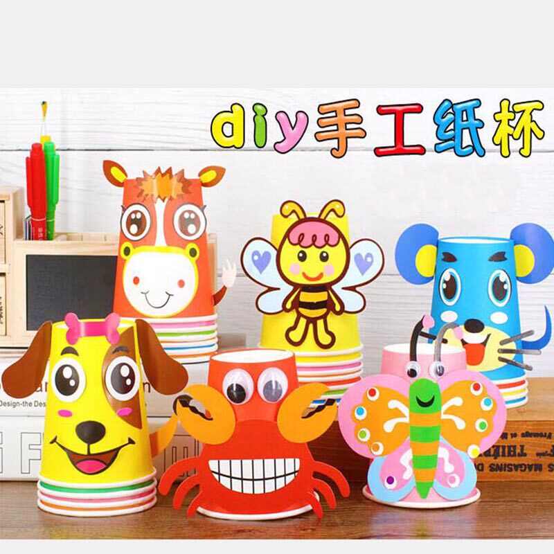 Color paper cup stickers kindergarten children's educational handmade diy making material package cartoon animal sticky toy