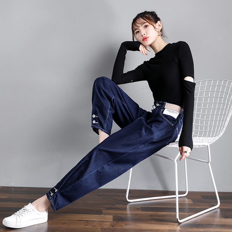 Dark blue Harlan jeans Women's spring autumn season 2022 years High waist display slim and slim Radish Old Daddy Pants
