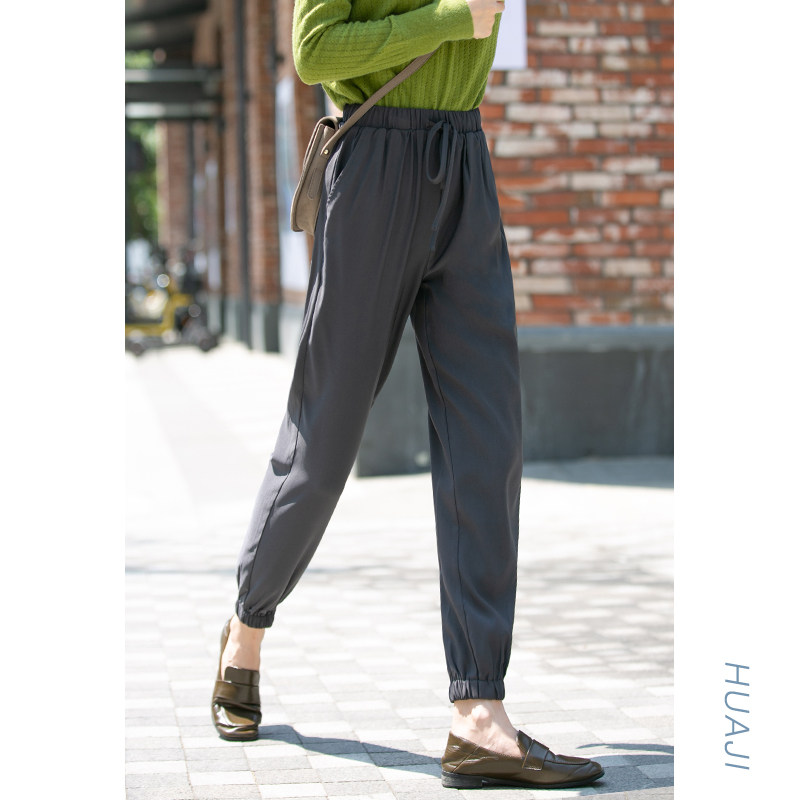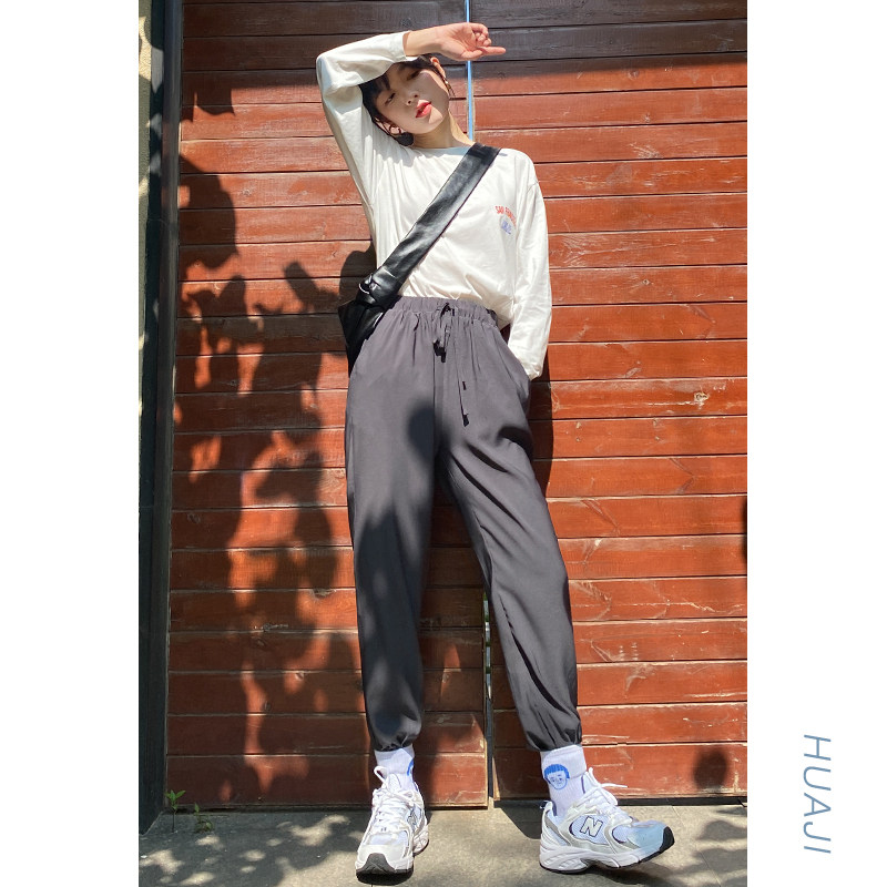 Flower gig K900 black pituitary sensation slim lacing tightness waist sports bunches foot casual pants female straight cylinder loose pants