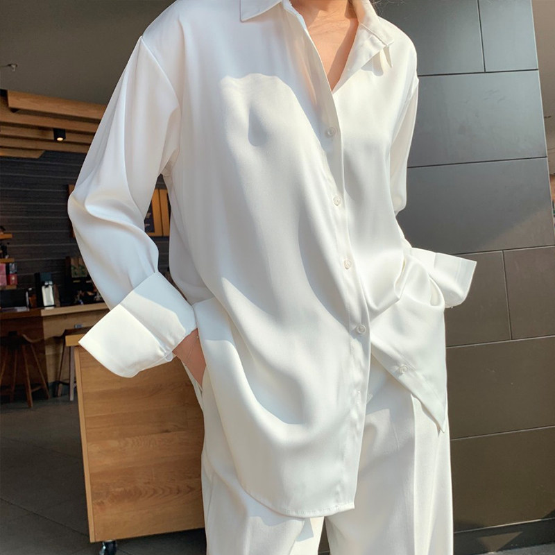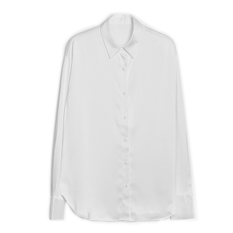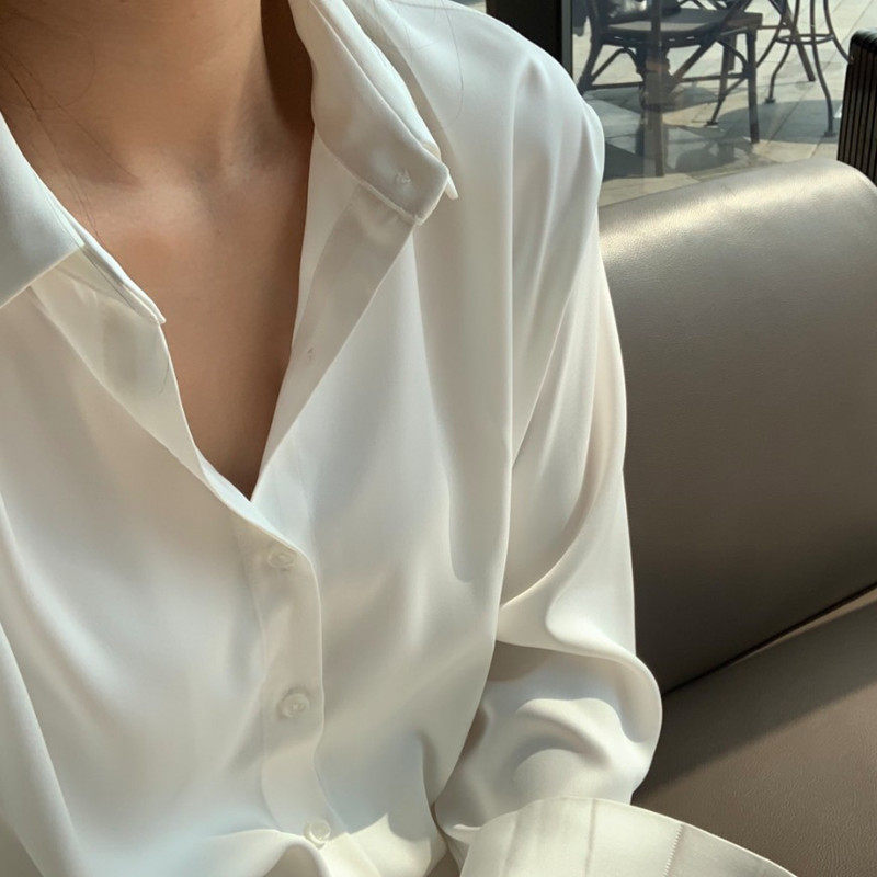 Real Silk Shirt Woman Design Sensation outside wearing 100 hitch silk mulberry silk long sleeve satin face lukewarm and thin shirt