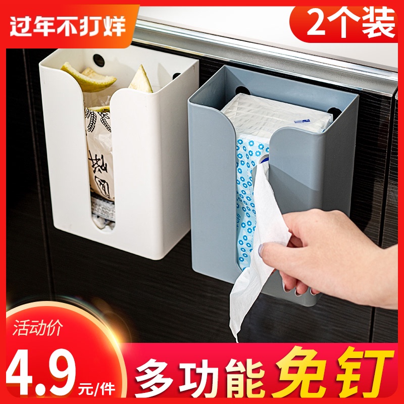 Home kitchen multi-functional creative toilet paper box living room toilet punch-free wall-mounted upside-down paper towel storage rack