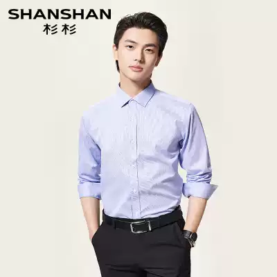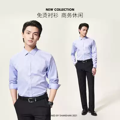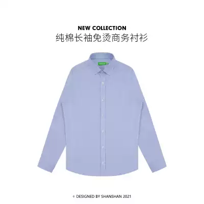 SHANSHAN SHANSHAN men's 2021 spring and summer pure cotton long-sleeved square collar free ironing business casual shirt