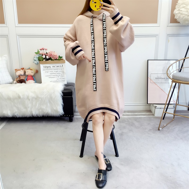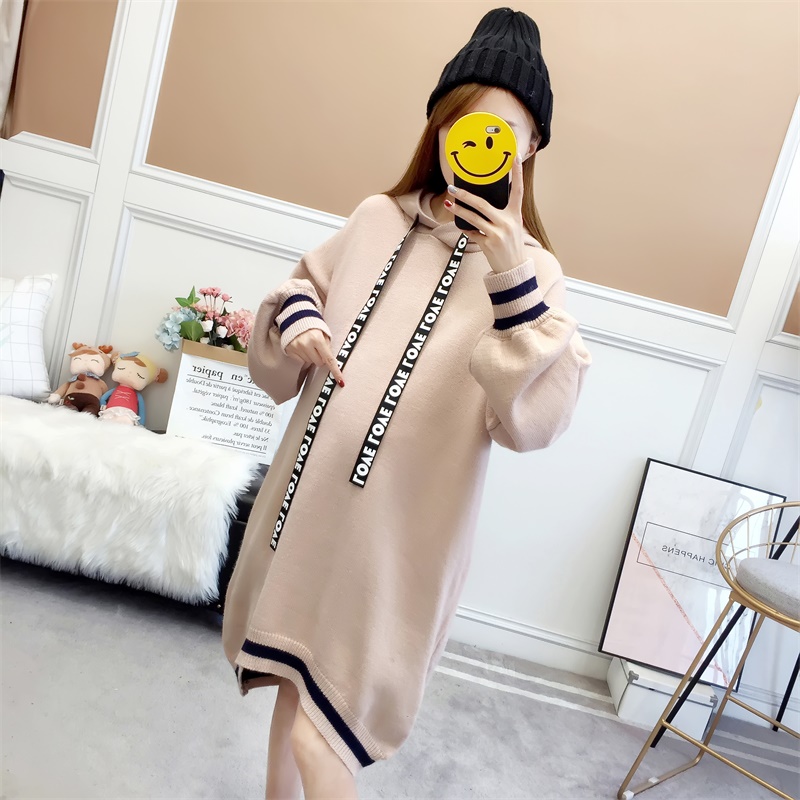 Pregnancy Woman Dress Autumn Clothing with hat sweater suit with long version of sweater dress in autumn and winter style jacket in winter style jacket
