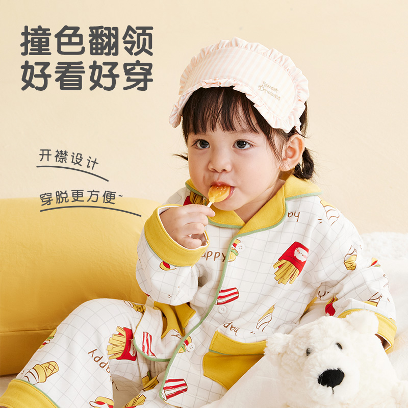 Boy Sleepwear Spring Autumn Season Pure Cotton Children Long Sleeve Turnover Collar Home Conserved Baby Spring Money Boys Small And Medium Boy Suit Women-Taobao