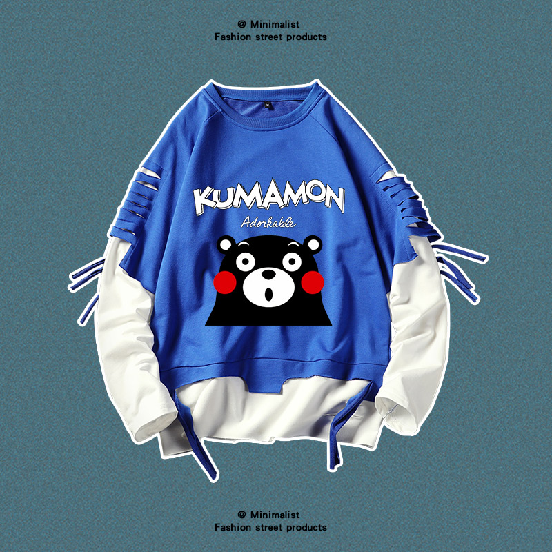 Small Bear League name Caton perimeter printed thick cotton T male fashion Hole Beggar Wind Lovers long sleeve Shaw War concots