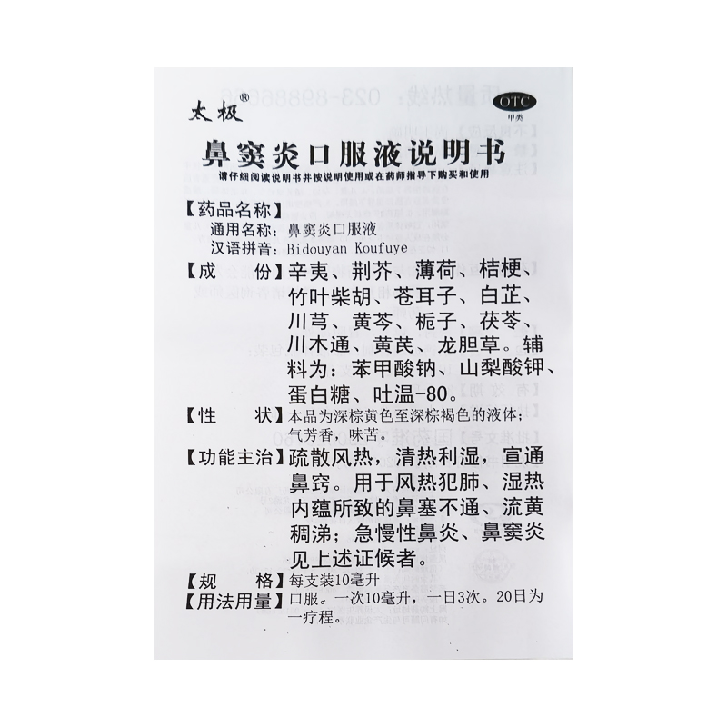 Tai Chi Sinusitis Oral Liquid 10ml x 10 sticks for acute and chronic rhinitis, nasal congestion, nasal passage, and sinusitis