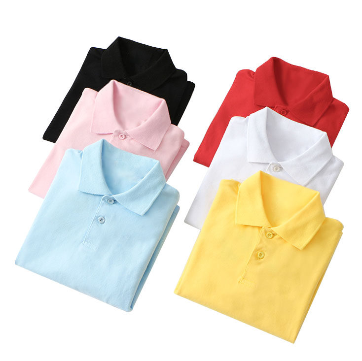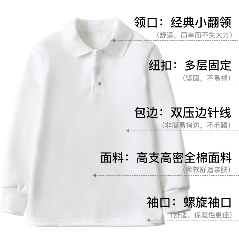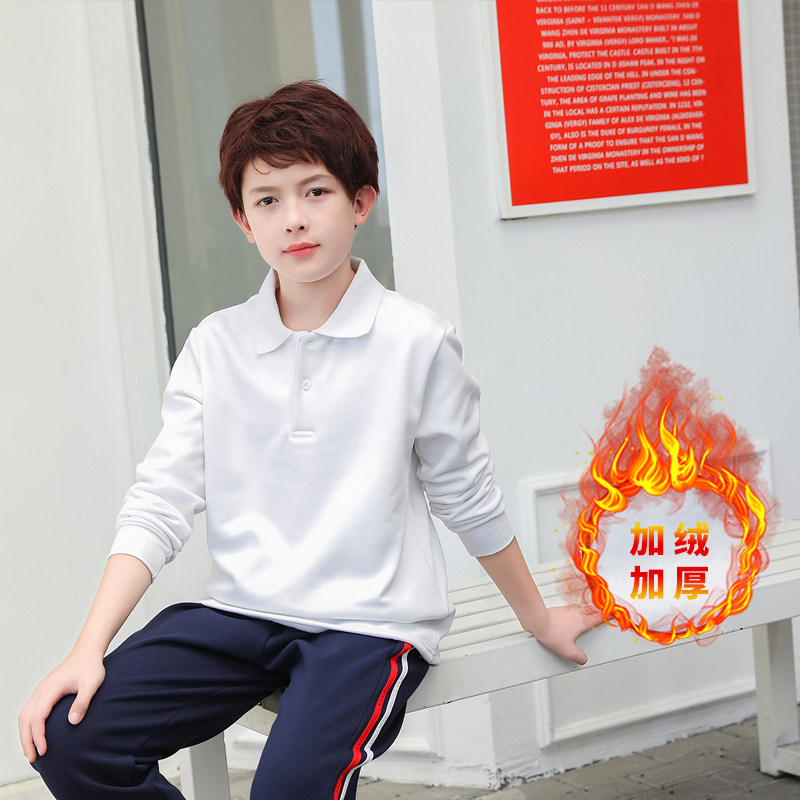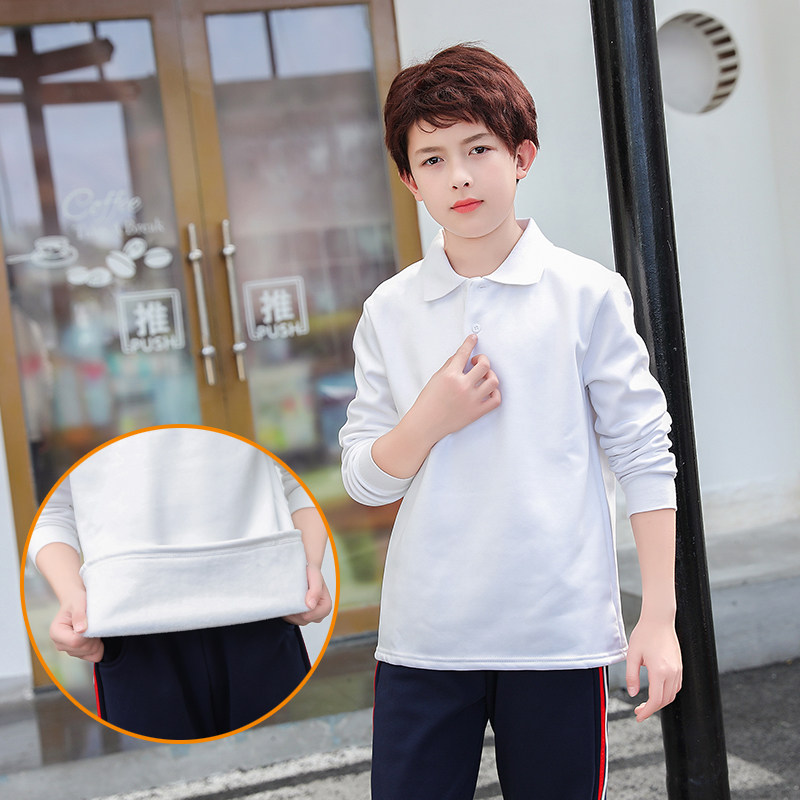 Boys polo shirt Cotton plus velvet Girls long-sleeved T-shirt Children's middle and large children primary school school uniform white lapel winter