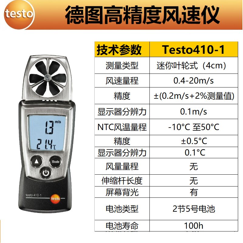 Testo405-V1 mini-hotline anemometer Testo410-1 Mini impeller anemometer Testo410-2 impeller anemometer with humidity Testo51
