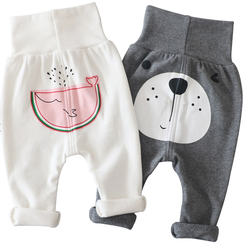 Baby high waist belly pants spring and autumn women's autumn clothes children's pants male newborn double gear leggings baby pp pants