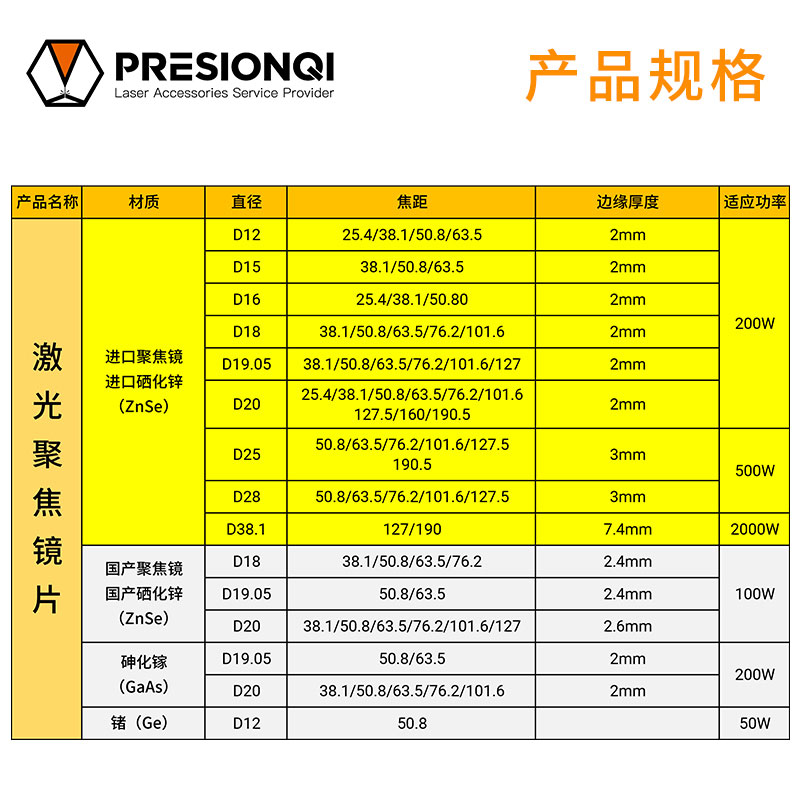 Diameter 12mm (for stamping machine) Diameter 15 Focal length 38.1 50.8mm Diameter 18 focal length 50.8mm (commonly used) Diameter 18 Focal length 63.5mm Diameter 19.05 Focal length 50.8mm (commonly used) Diameter 19.05 Focal length 63.5mm Diameter 20 focal length 38.1mm Diameter 20 focal length 50.8mm (commonly used) Diameter 20 Focal length 63.5mm (commonly used) Diameter 20 focal length 76.2mm diameter 20 focal length 101.6mm diameter 25 focal length 50.8mm diameter 25 focal length 63.5mm diameter 25 focal length 101.6mm diameter 25 focal length 76.2mm Other sizes consult customer service