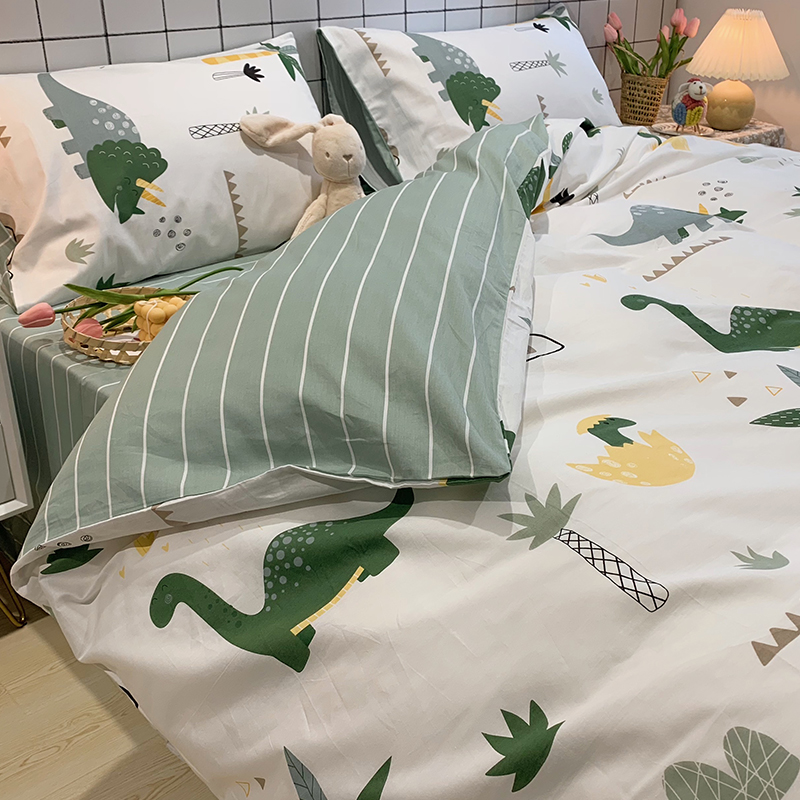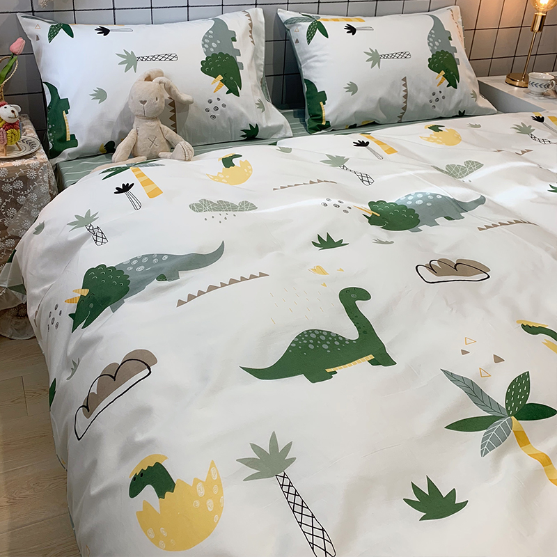 Dinosaur cartoon cute boy cotton muted on four-piece set of pure cotton ins wind three-piece set small fresh duvet cover 4