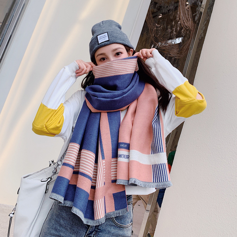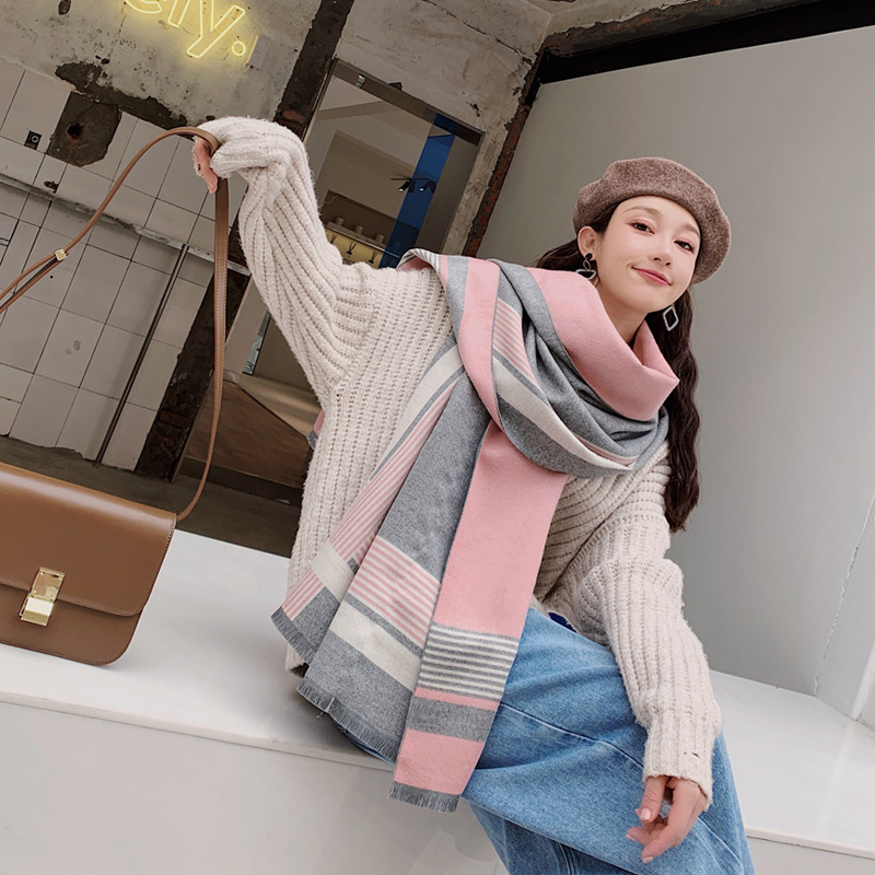 Shawl female autumn winter scarves double-side warm thickening imitation cashmere Korean version 100 hitch oversized collage women's neck