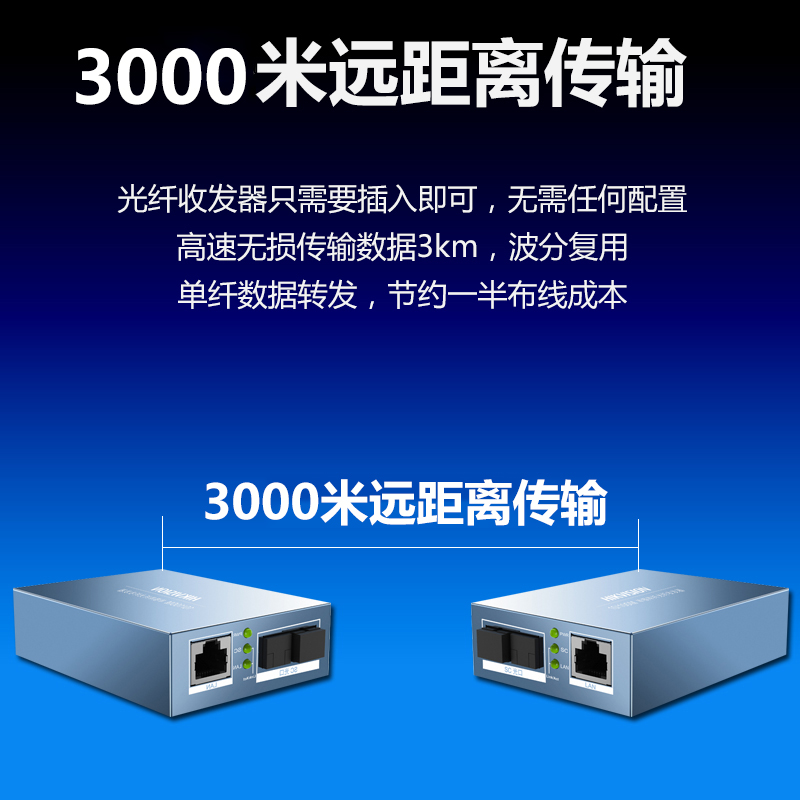 Hikvision Gigabit 100 Megabytes single mode single fiber optical transceiver plug and play transmission 3Km 20KM