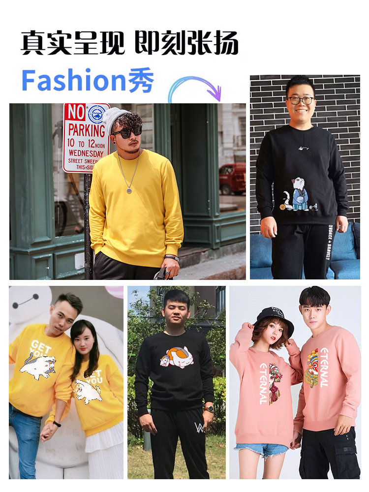 Wei Yi not hooded men fat loose spring and autumn jacket men's Japanese plus velvet hooded round neck plus large size men's clothing