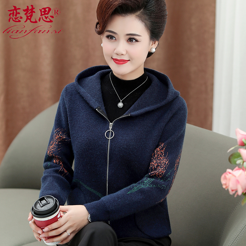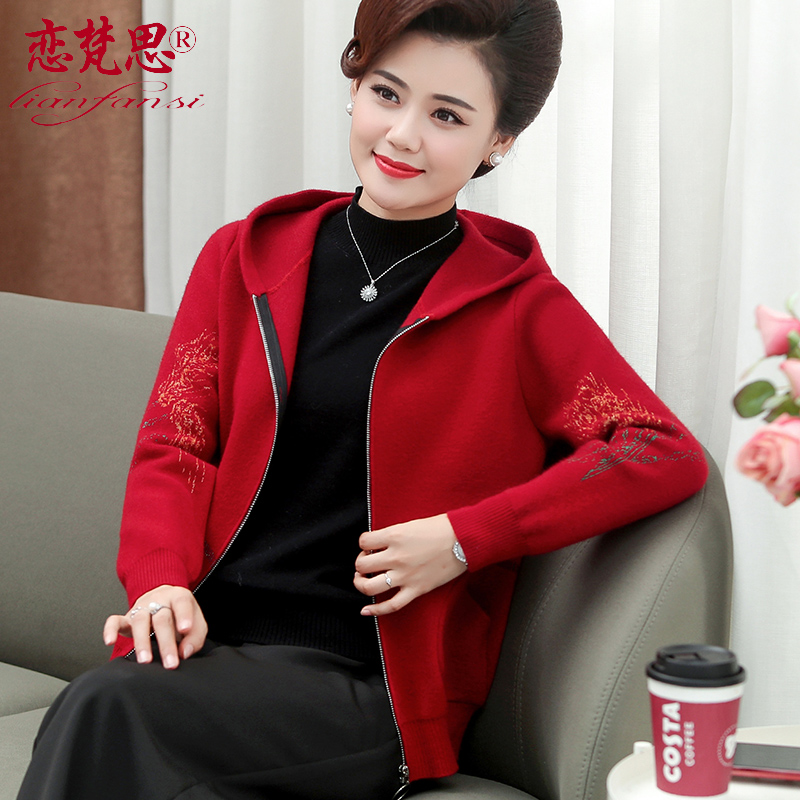 Middle-aged mother autumn dress Western style coat short 2022 new middle-aged and elderly women's spring and autumn cardigan hooded fashion top