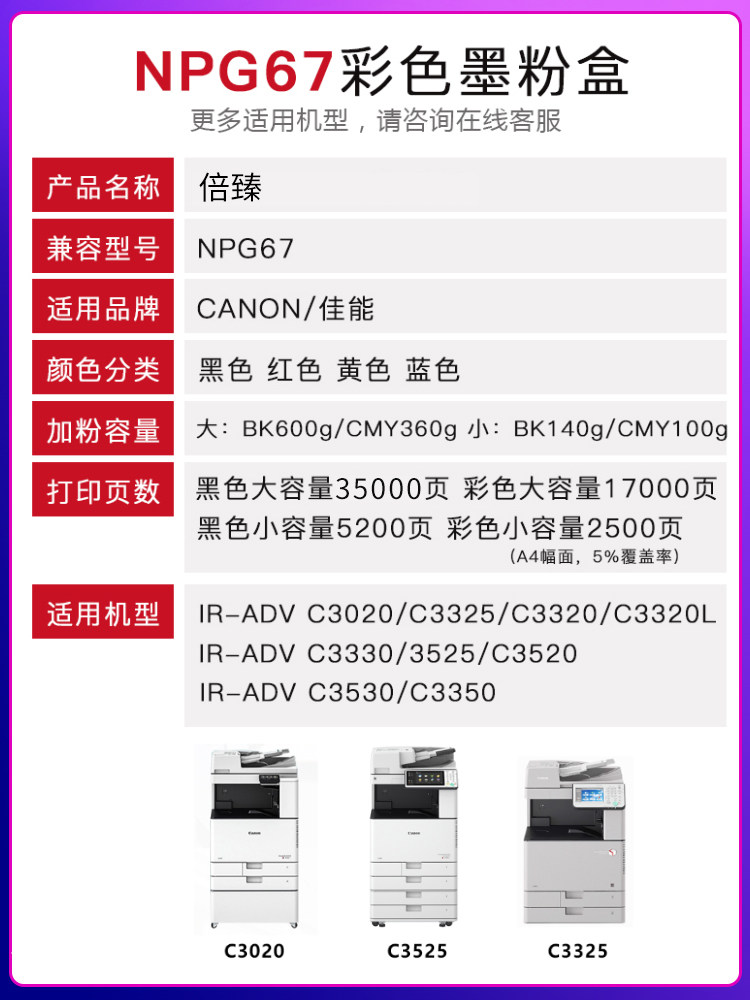 Applicable Canon Color C3020 Carbon C3320L C3320L C3120 C3025 C3330 C3330 C3330 C3350 drum C3125 C3350 C3350 powder box