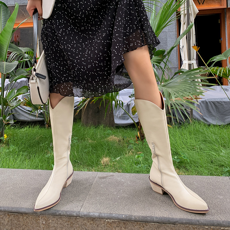 Self-retaining vintage Joker ~ All cowhide pointed middle and western cowboy boots but knee boots high boots high boots female