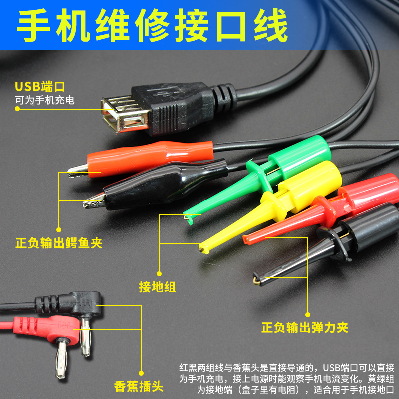 Mobile phone repair power cord USB phone power connector line DC stabilized power supply output 7 fit 1 test line