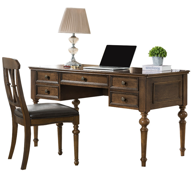 American Solid Wood Desk Simple Computer Desk Office Desk European Study Writing Desk Desk Chair Bookcase Combination Furniture