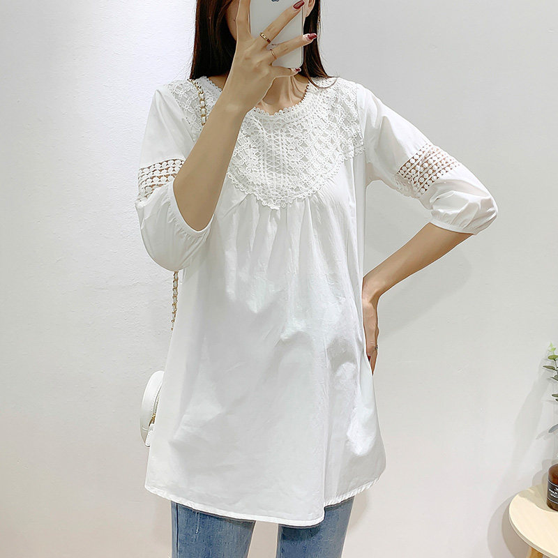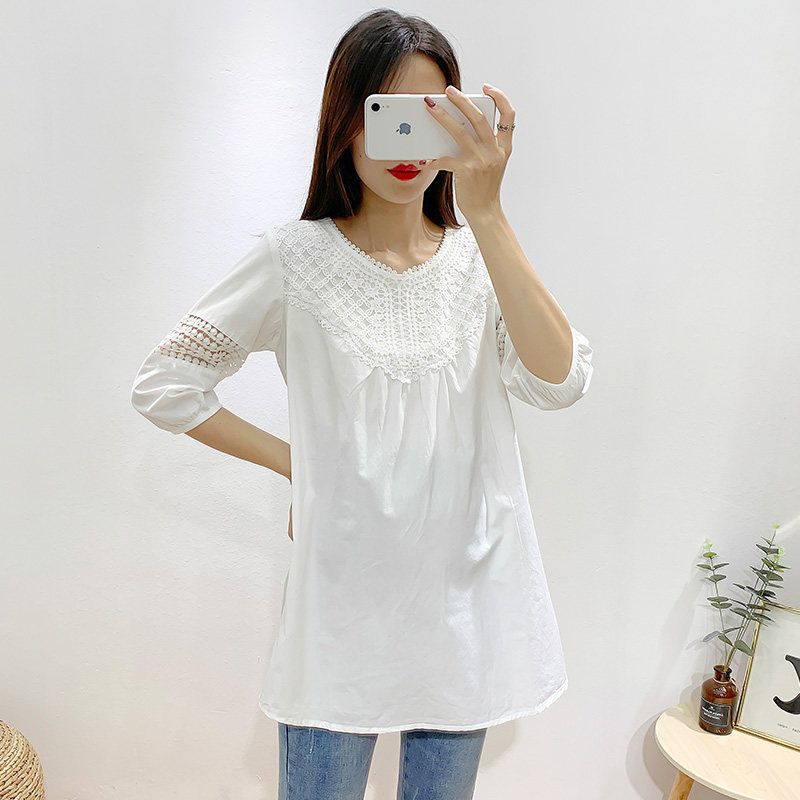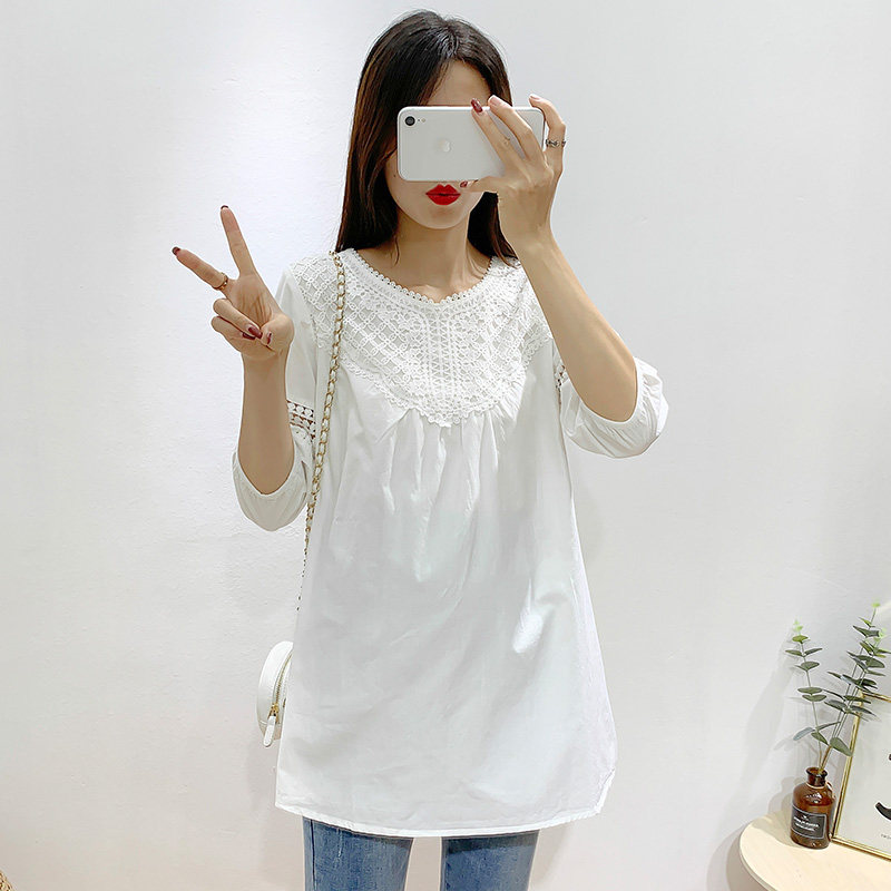 Pregnant women spring new mid-sleeve top fashion large size loose summer Foreign school medium and long version wild cotton T-shirt