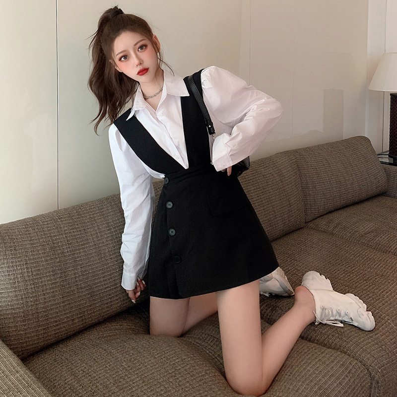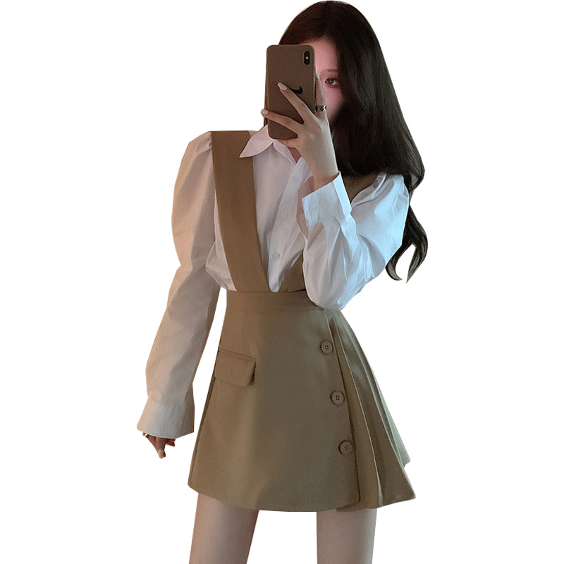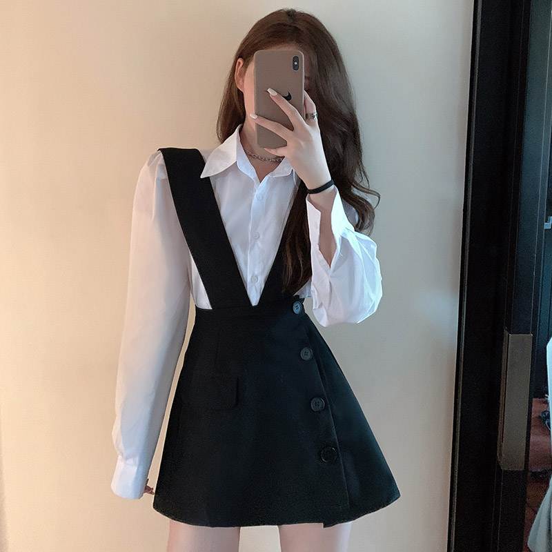 Khaki shirt Baby bag skirt suit Black shirt baby bag skirt suit