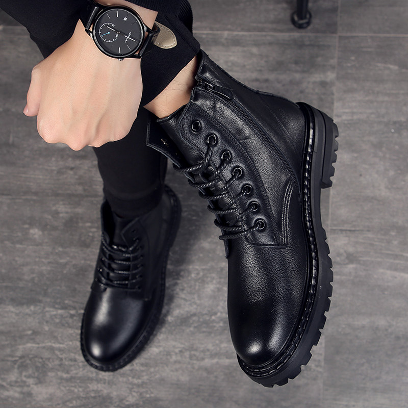 Martin boots male high cylinder leather boots 2022 new men genuine leather warm boots Korean version trendy men's shoes winter boots man