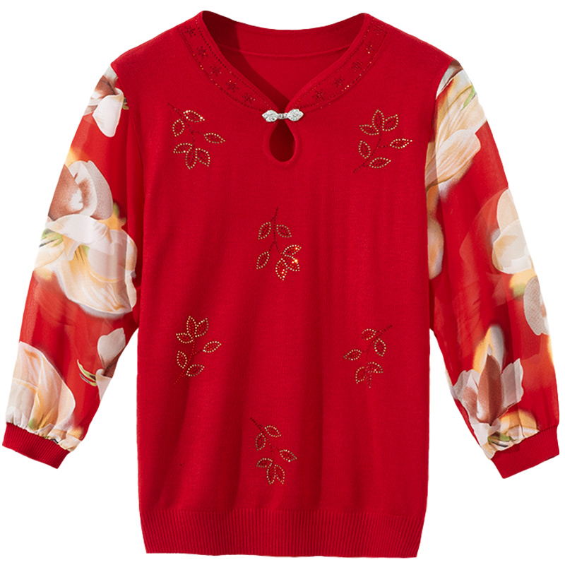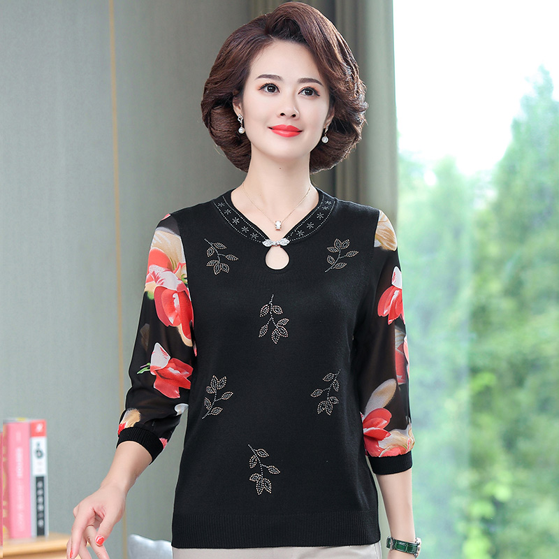 Mother Spring Summer Dress Foreign Pie 70% Sleeves Blouse Blouse Middle-aged Women T-shirt 50 Year Old Age 2021 Early Spring New