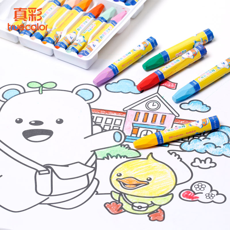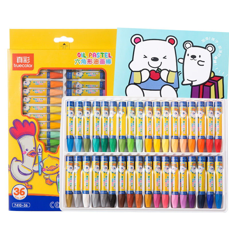 True color oil painting stick 36 colors children's painting safe color crayon 48 colors kindergarten elementary school students paint brush color pen environmental washable baby colorful mixed color oil bar wholesale 24 colors
