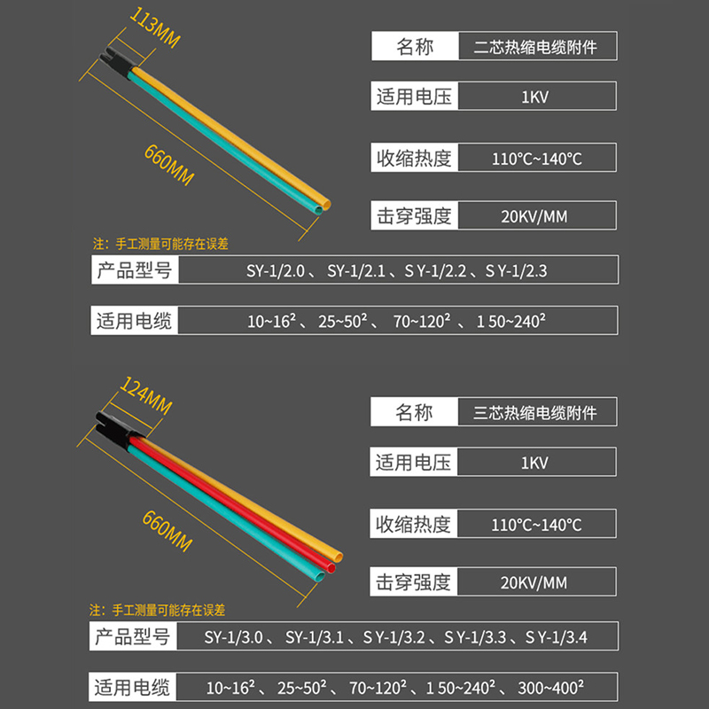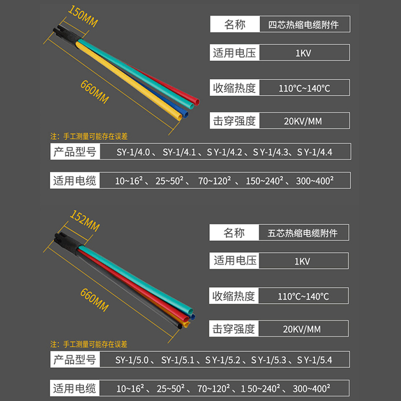 1kv cable heat shrinkable terminal cross-linked two-core three-core four-core five-core 10-400 cable heat shrinkable accessories finger sleeve