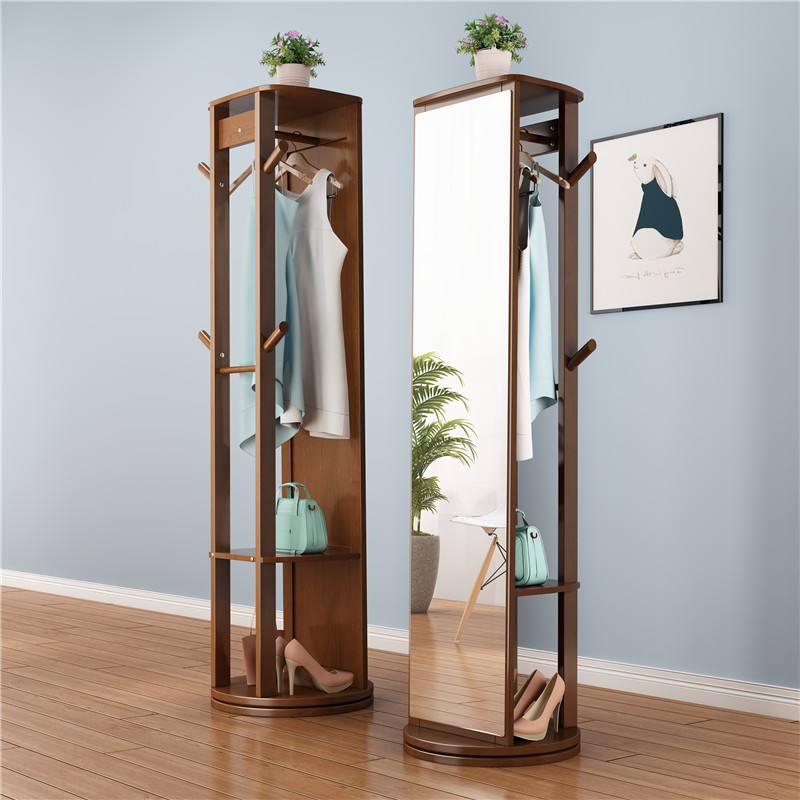 Full-length mirror Full-length mirror Solid wood floor mirror Rotating household multi-functional vertical hanging cap Full-body mirror hanger one