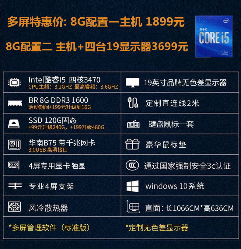 Professional Multi-screen Stir-fry Stock Computer Split Screen One-Machine Multi-screen I79700 Four-Screen Six-Screen 43 Large Screen Computer Financial Fried Stock Securities Foreign Exchange Futures Assembly Desktop Computer Host