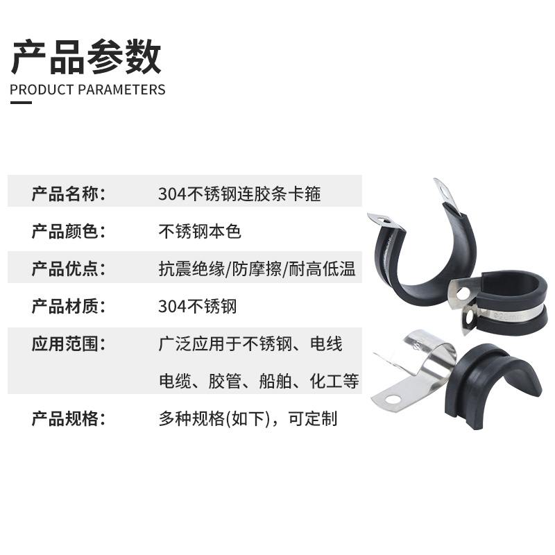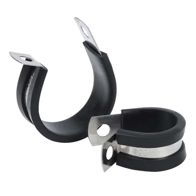 304 Stainless Steel Tandem Adhesive Tape Laryngeal Hoop R Type Fixed Tube Card U Type Riding Card Holder Rubber Shock Absorbing Hoop