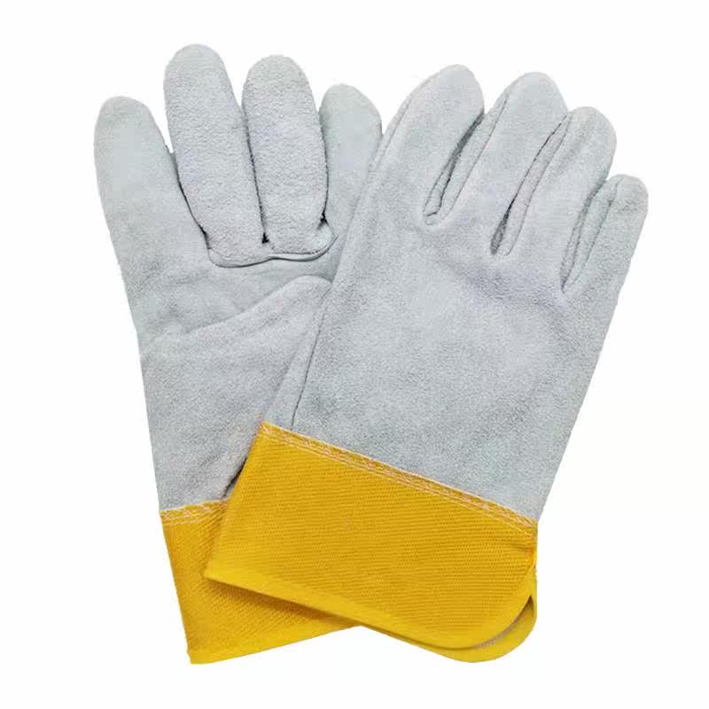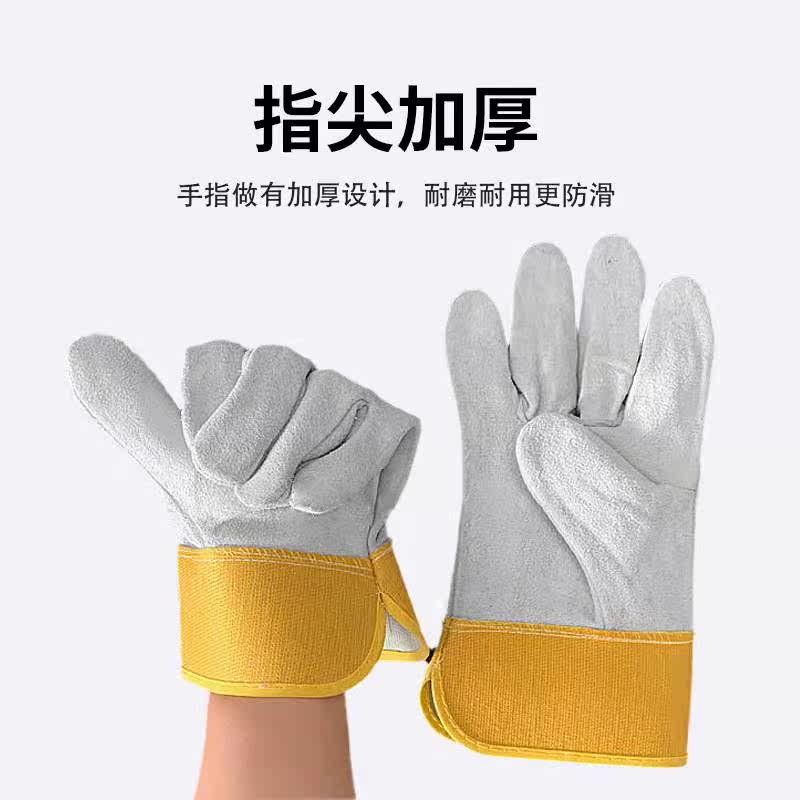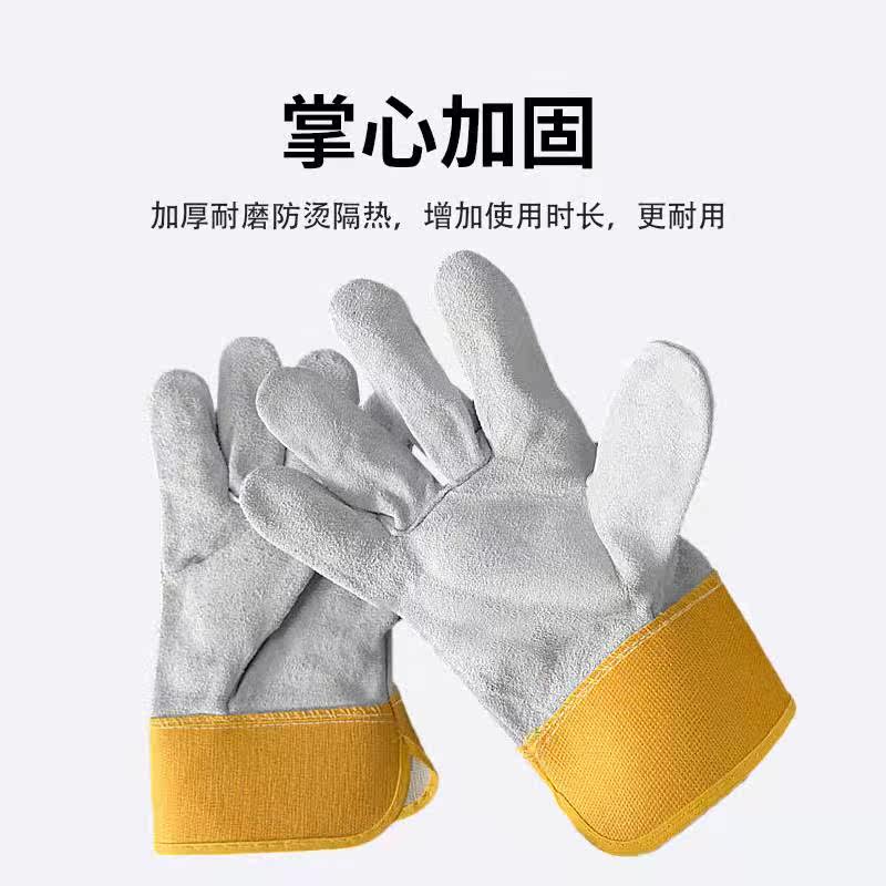 Labor insurance welding gloves short seamless plus leather welder gloves high temperature anti-hot soft wear resistance special