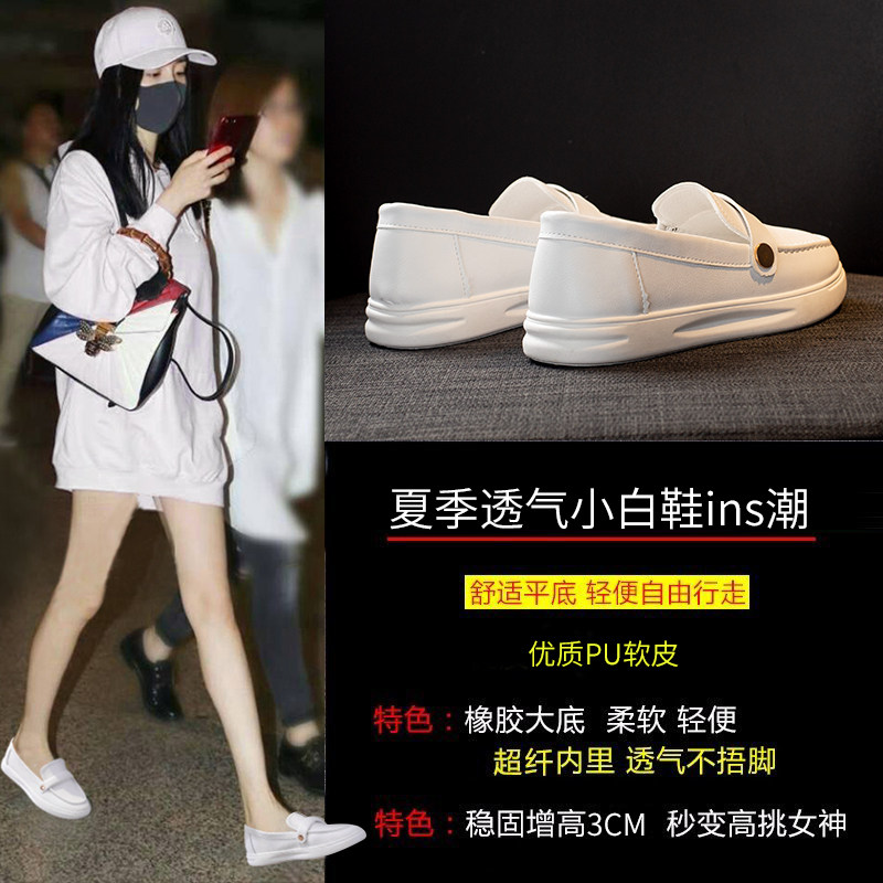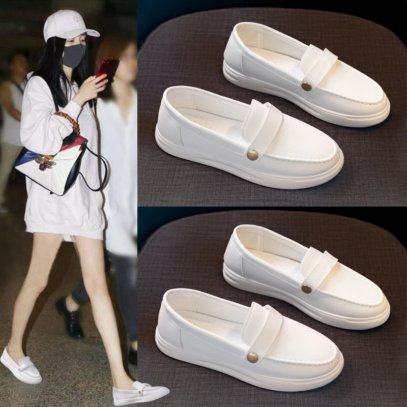 Small White Nurse Shoes Woman 2022 Spring Breathable New 100 Hitch LAZY Man One Foot Pedal Flat Bottom Bean Bean Shoes Spring Autumn Single Shoes
