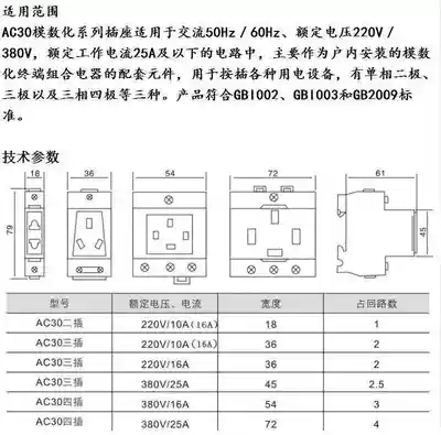 AC30 modular multi-function socket rail type two-plug three-plug five-plug 10A16A25A two-hole three-hole five-hole