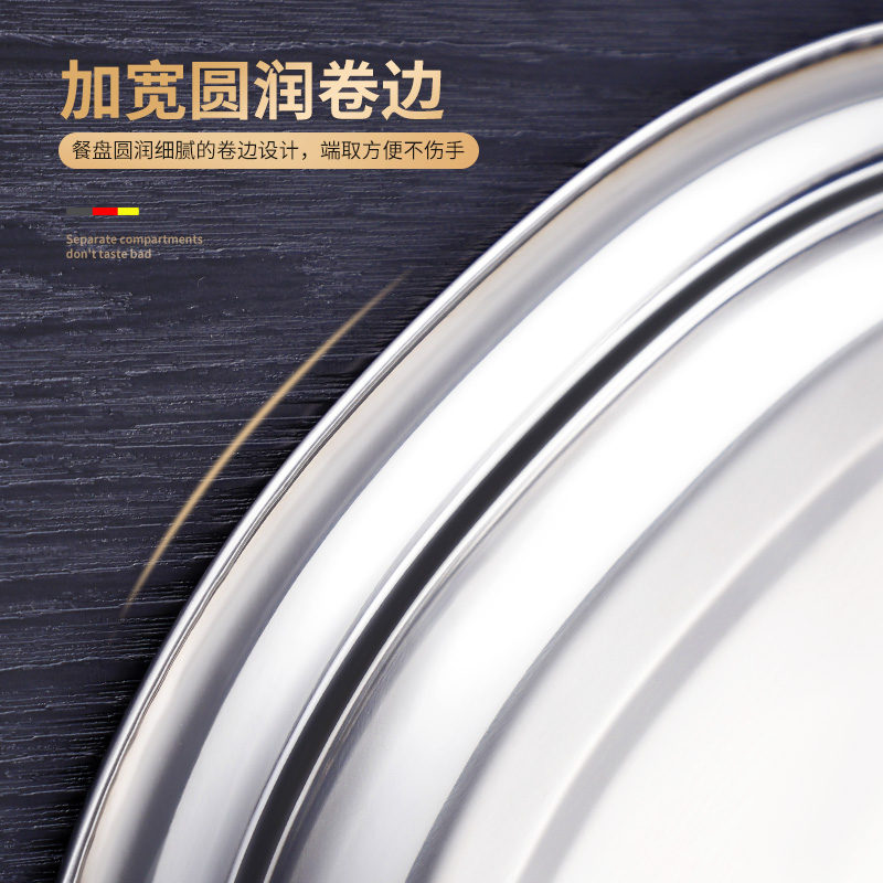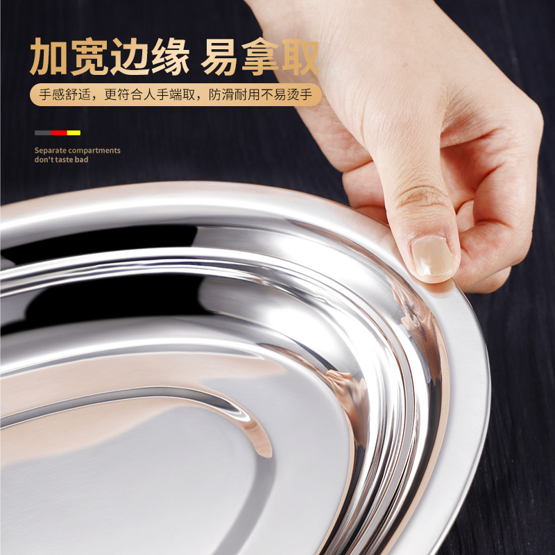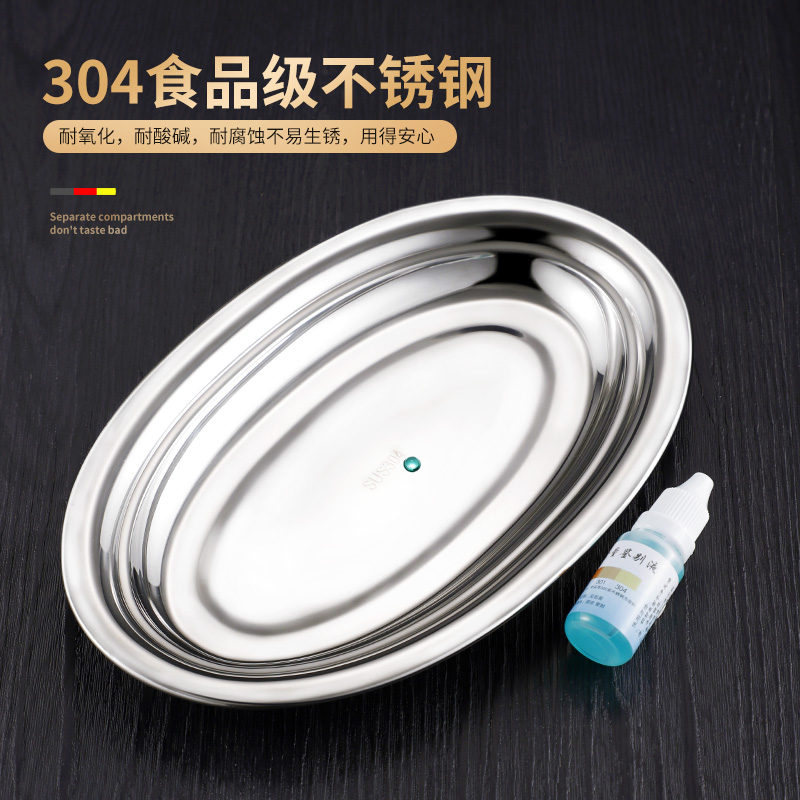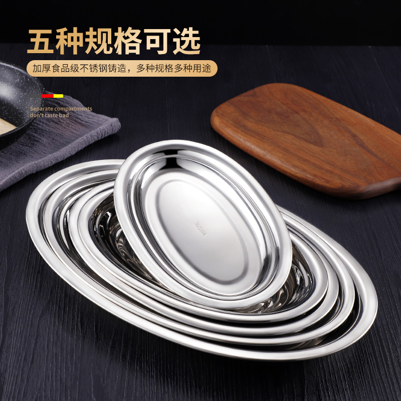 Food grade 304 stainless steel plate household dish steam dish dish creative elliptical dish thickening large
