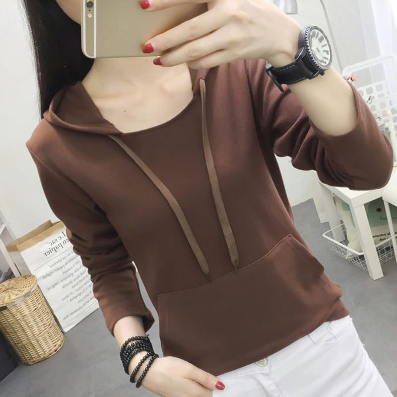 Tide card 2022 Fall new casual blouses woman long sleeve 100 hitch fit T-shirt plus suede hoodie jersey undershirt