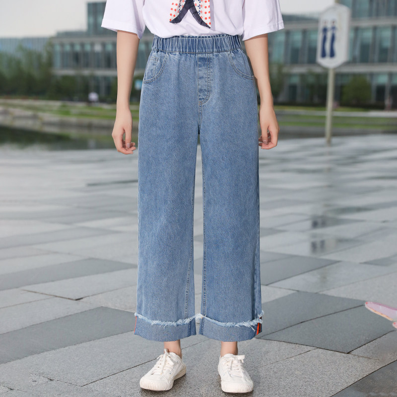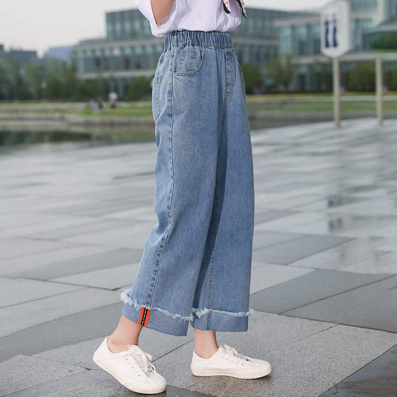 Can point girl jeans Junior high school students autumn wide leg pants loose Korean version of high school girls straight pants