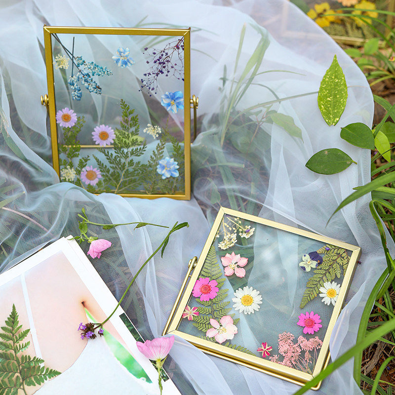 Creative Dried Flowers Botanical Specimens Handmade DIY Embossed Collage Glass Photo Frame Pendulum Table Modern Minimalist Picture Frame Pendulum