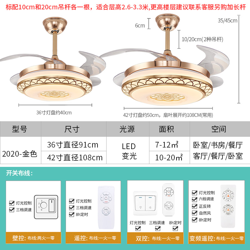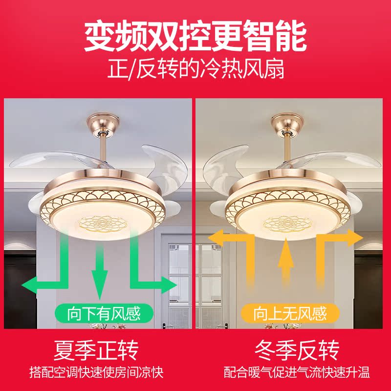 Invisible ceiling fan lamp ceiling fan lamp Nordic dining room Living room Bedroom modern home minimalist with lamp electric fan smart frequency conversion