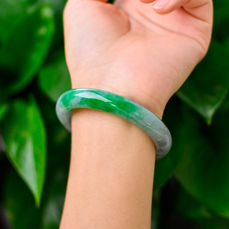 Universal Emerald Ice Glutinous Variety Yang Green Emerald Bracelet Urbone Chicken Jade Bracelet Retro Teenage Girl Bracelet Mother Bracelet Fine Bar A