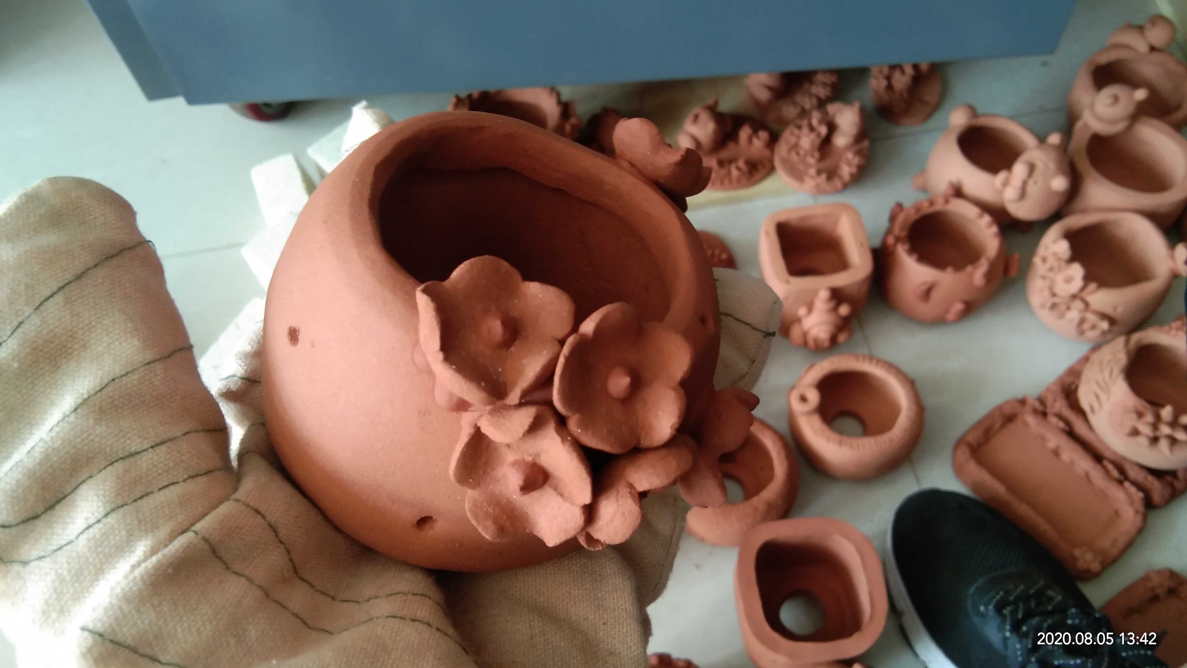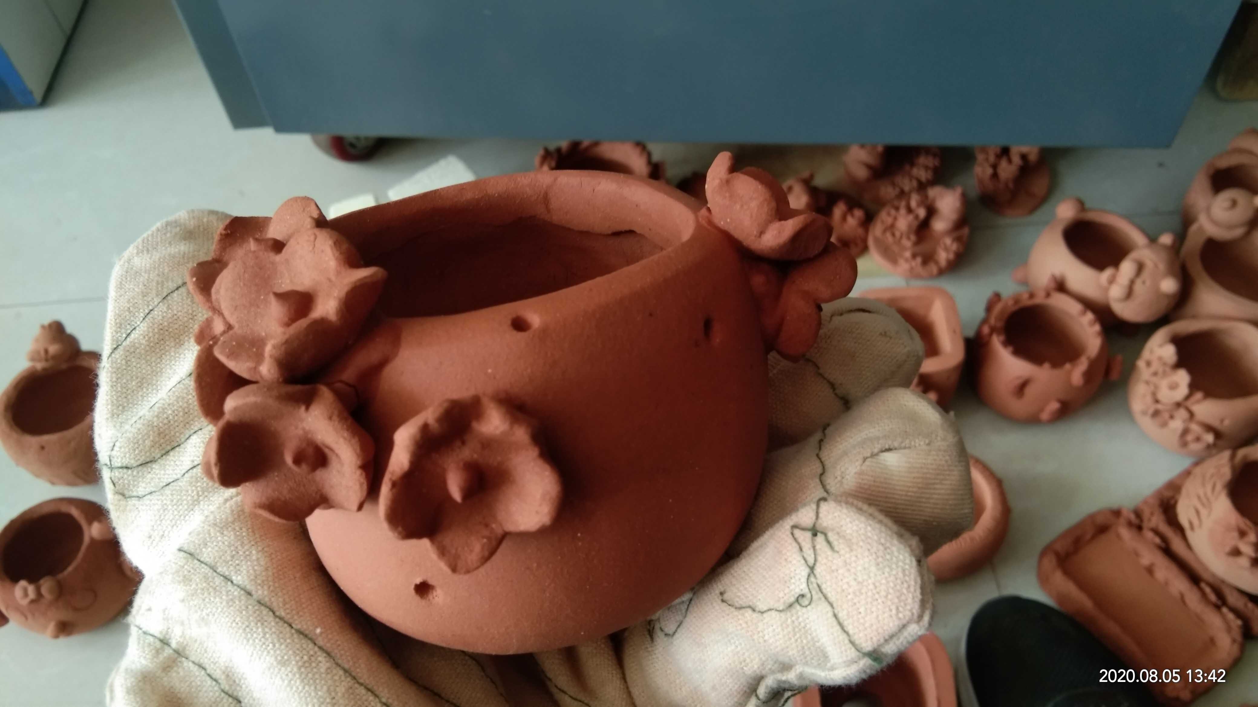 Vegetarian Burning Flower Pot Multi Meat Basin Pure Handmade Purple Sand Clay Material