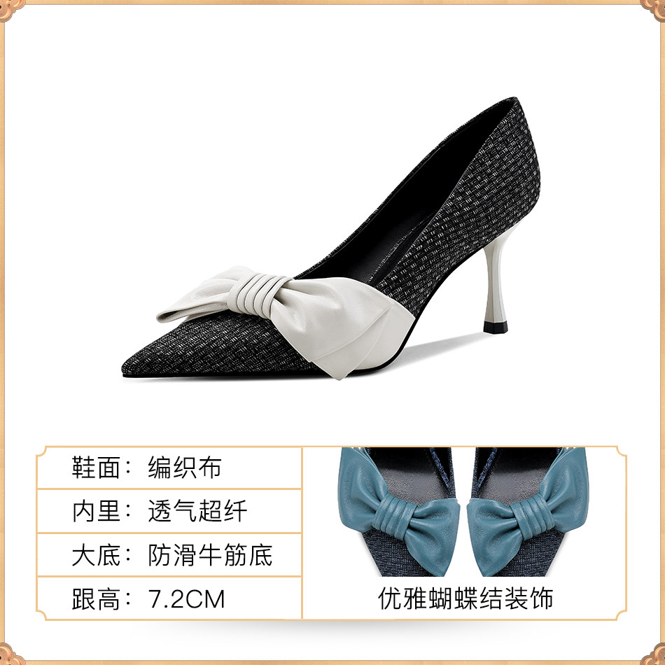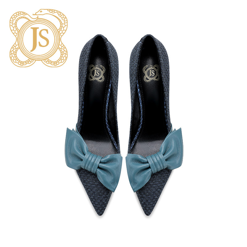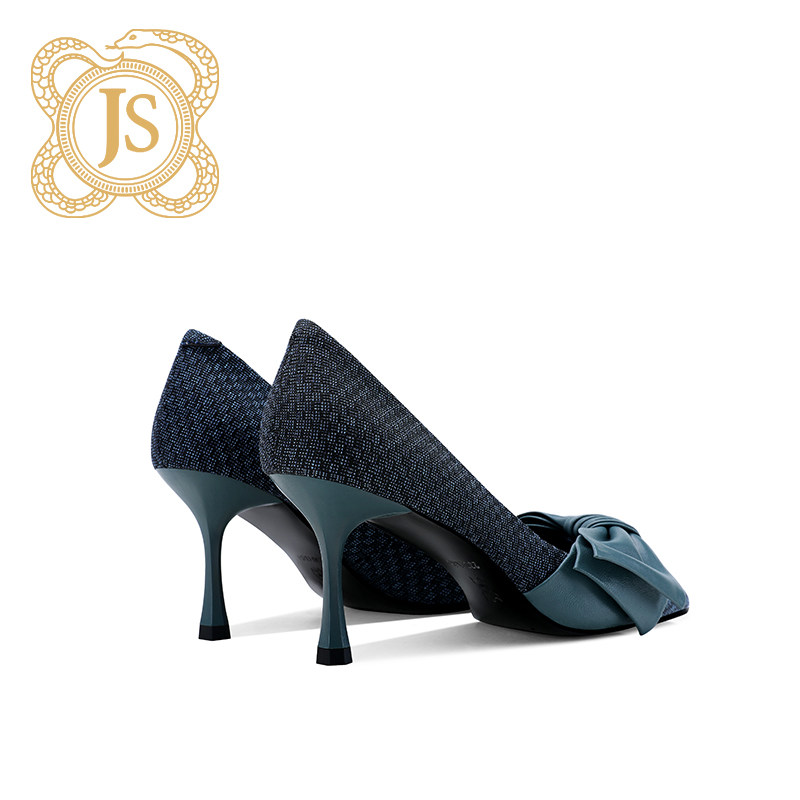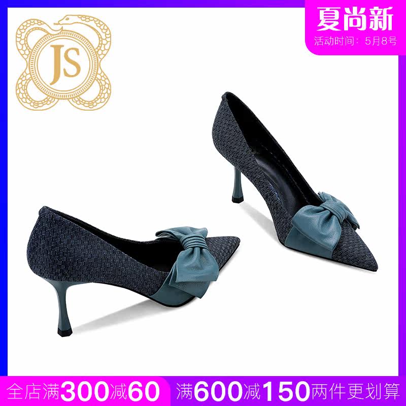 JESSICA SOPHIA butterfly knot retro small crowdsourced single shoe finer with dark blue design sensation heels female autumn