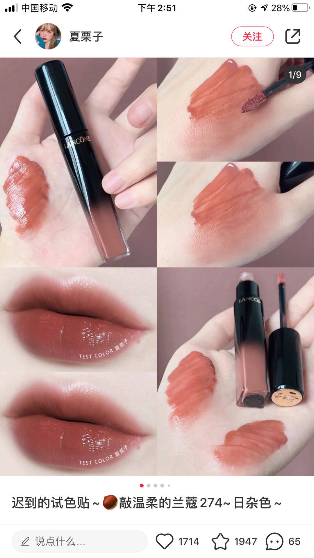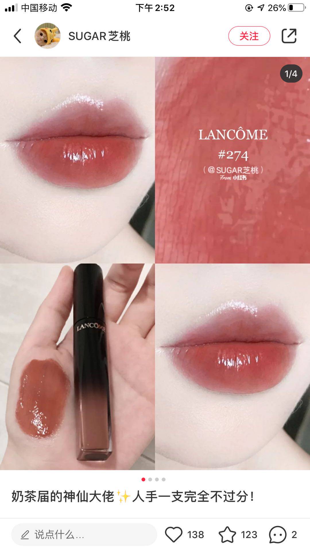Spot second hair Lancome Lancome black tube paint light lip glaze 274 milk tea color gem 274
