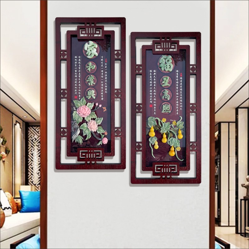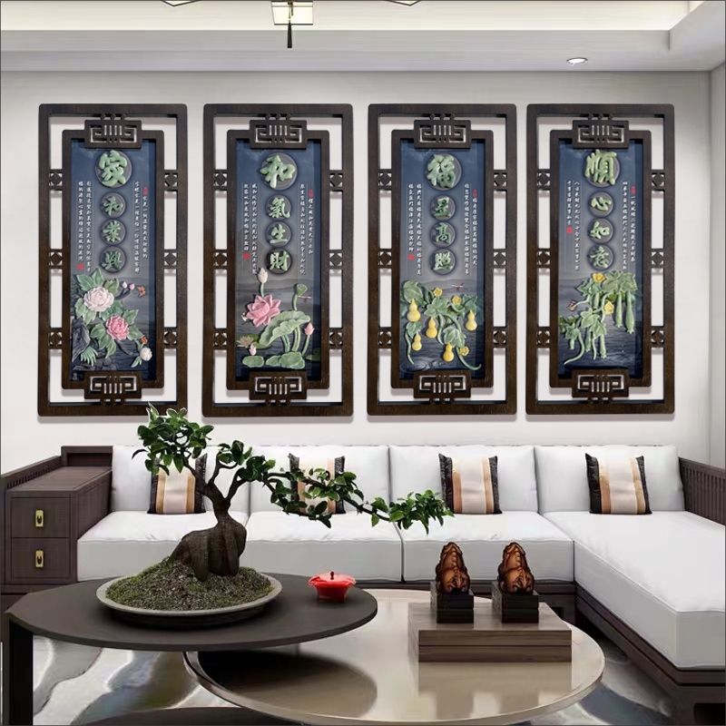 Living room decorative painting sofa background wall 3d three-dimensional relief painting Meilan bamboo chrysanthemum jade carving new Chinese dining room hanging painting