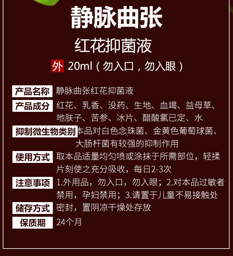 Central varicose vein varicose vein spray special special effective medicine paste green rib raised red flower bacteriostatic spray liquid massager