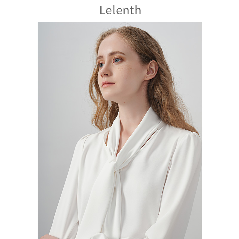 Laren Knowledge Elegant Float Band Loose Commuter White Chip Shirt Woman Sleeve OL Shirt