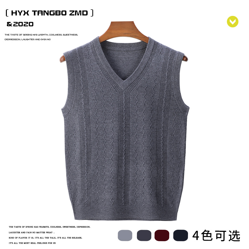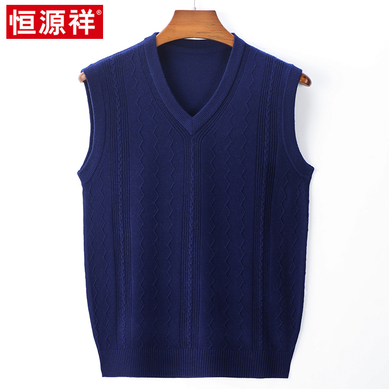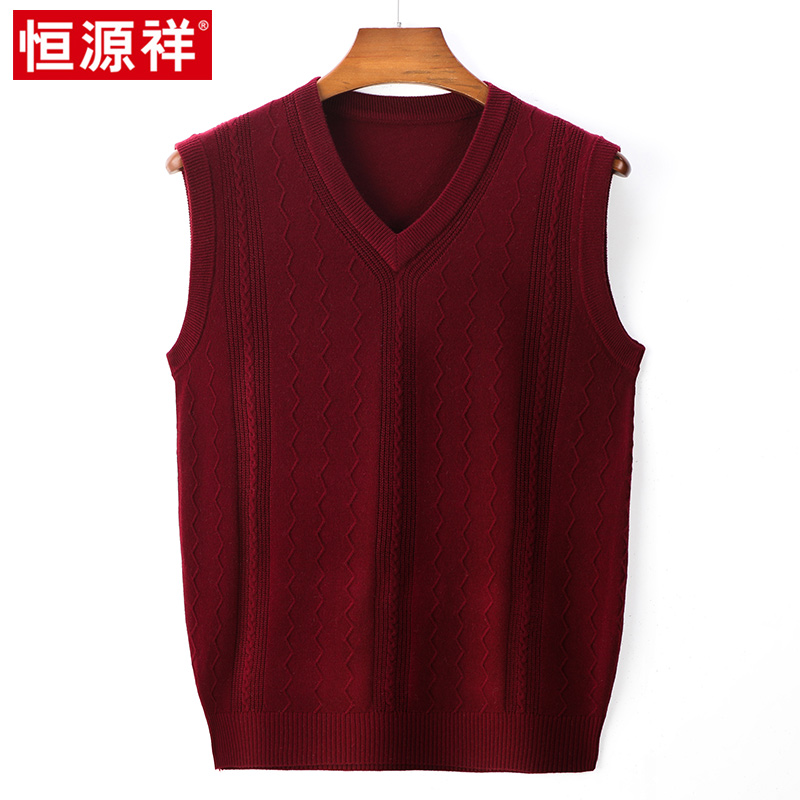 Hengyuan Xiang Men's V collar bottom knit vest in old age pure color with wool Camshoulder autumn winter warm vest