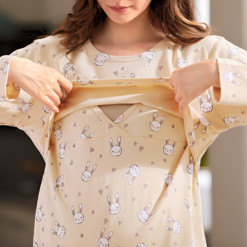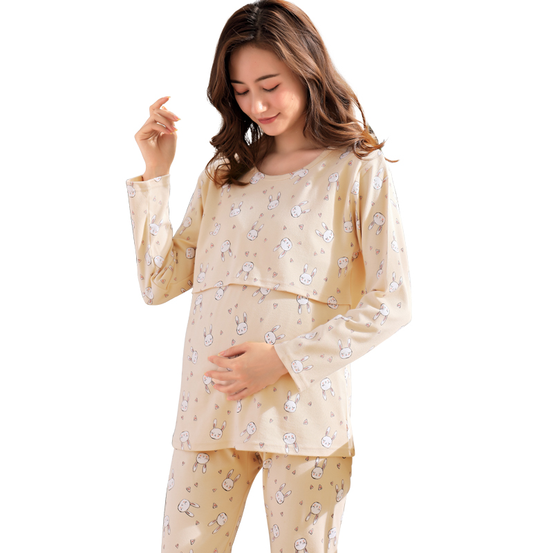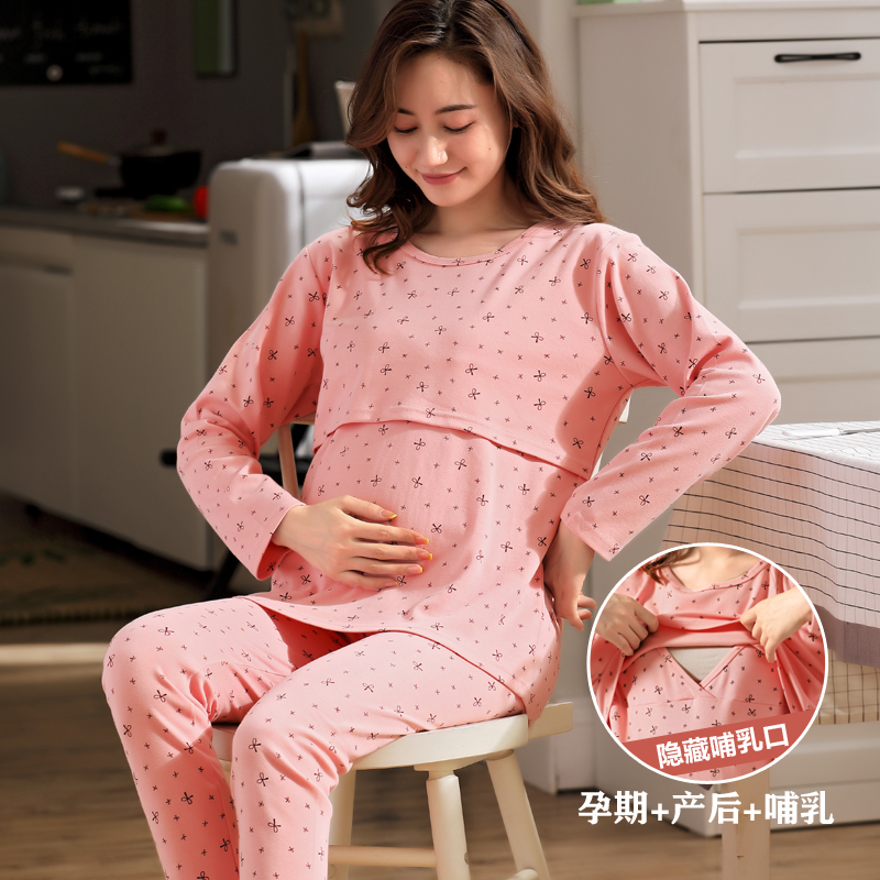 Lunar Subsuit Spring Autumn Season Long Sleeves Pure Cotton Pregnant Pregnant Pregnant Woman Sleeping postpartum lactation breast-feeding cloakhouse sanitary pants Heating clothes pants