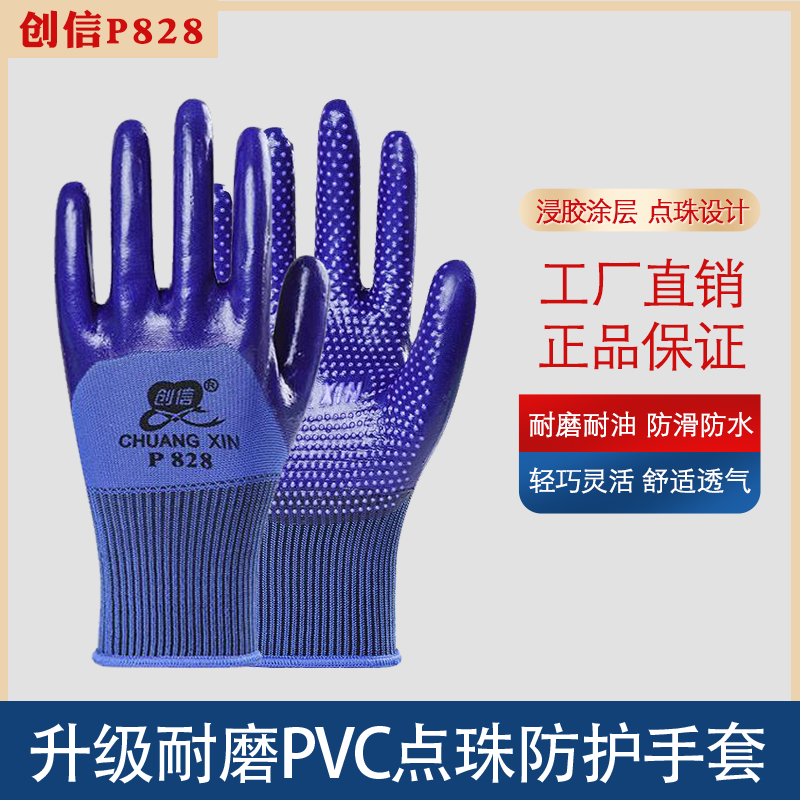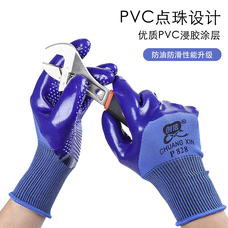 Chuangxin brand P828PVC wear-resistant labor insurance gloves dot beads non-slip waterproof oil-resistant thickened construction site steel bar male work
